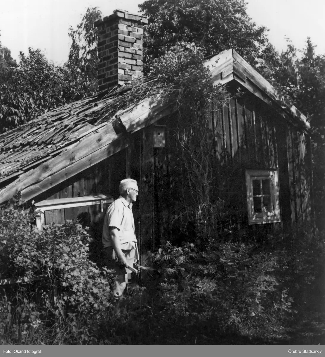 Man vid Lars Ersson gamla stuga i Erstorp i Hovsta, 1980-tal