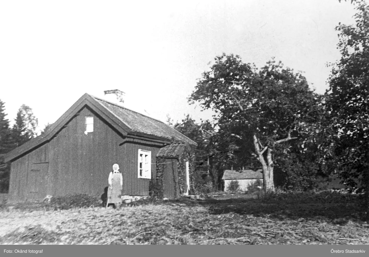 Kvinna på gården i Yxtabacken i Hovsta, 1930-tal