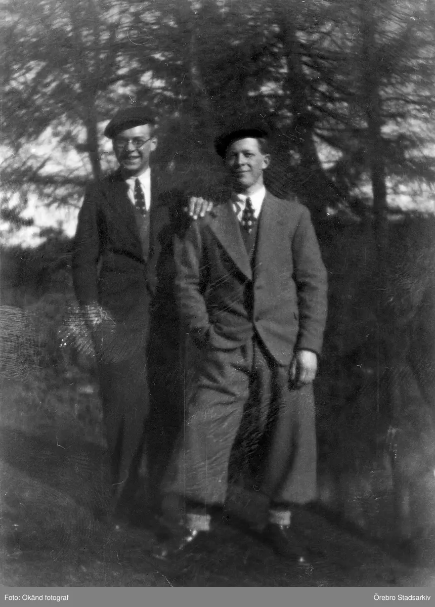 Två män vid träd i Yxtabacken i Hovsta, 1930-tal