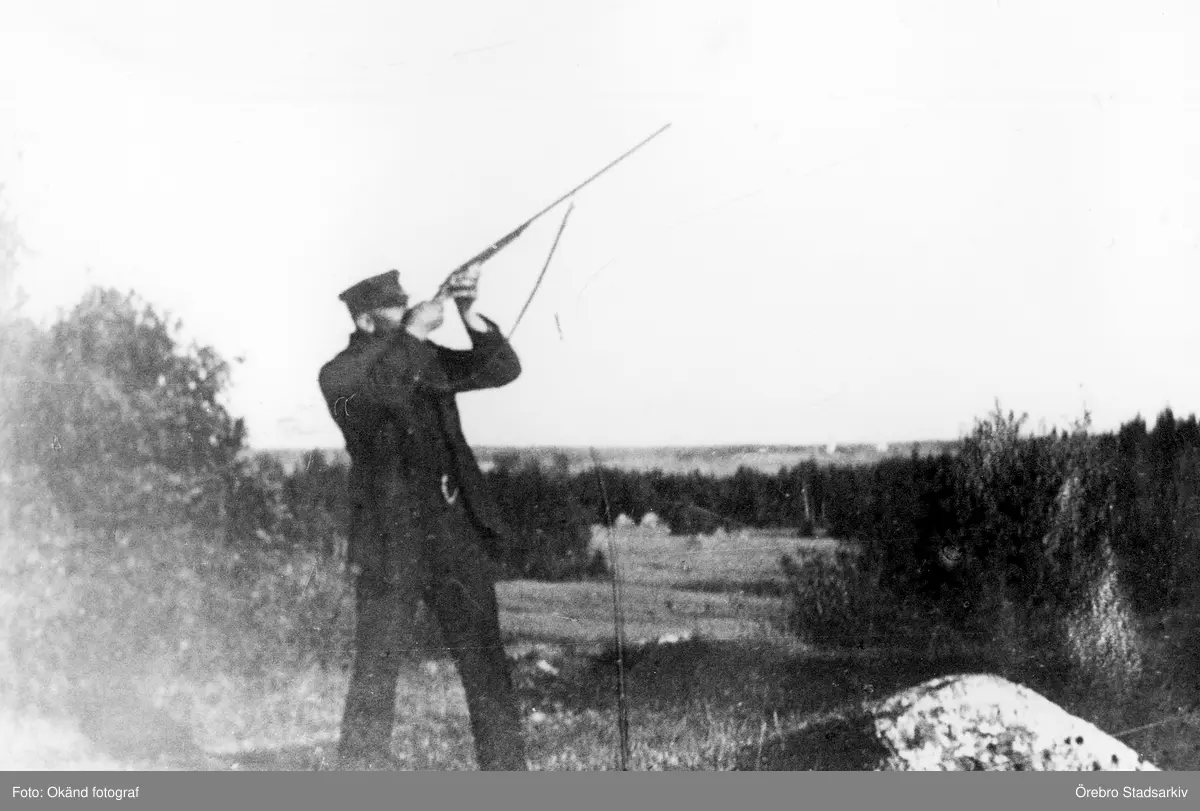 Man med gevär i Yxstabacken i Hovsta, 1900-1909