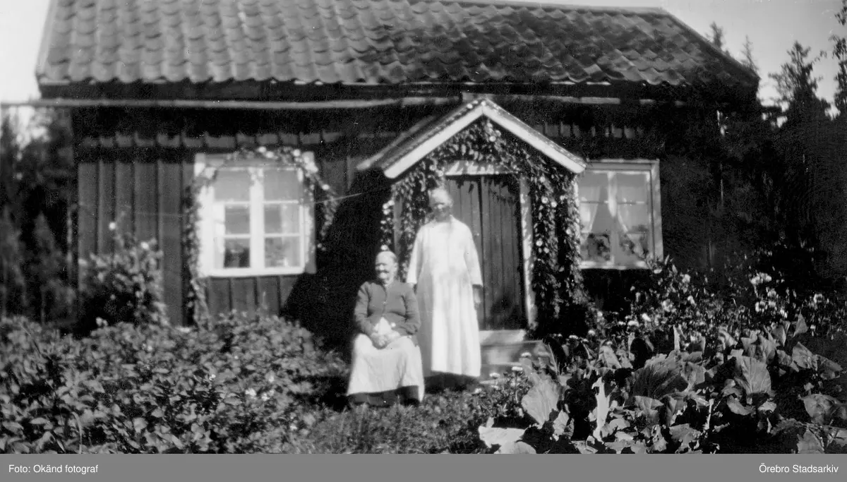 Johanna och Lina framför torpet i Hovsta, 1920-tal