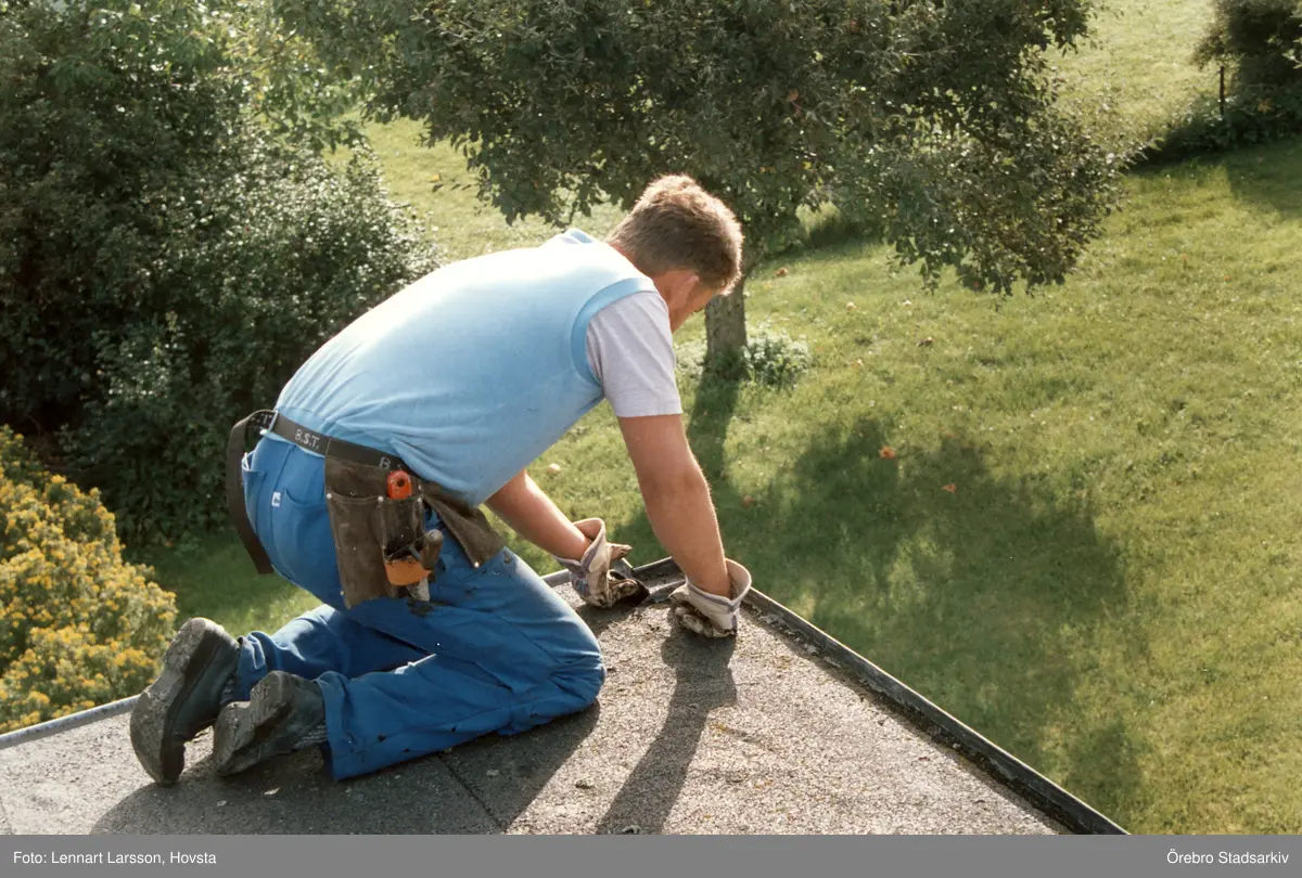 Pappläggning på tak på Bofinkstigen 6 i Örebro, 1992