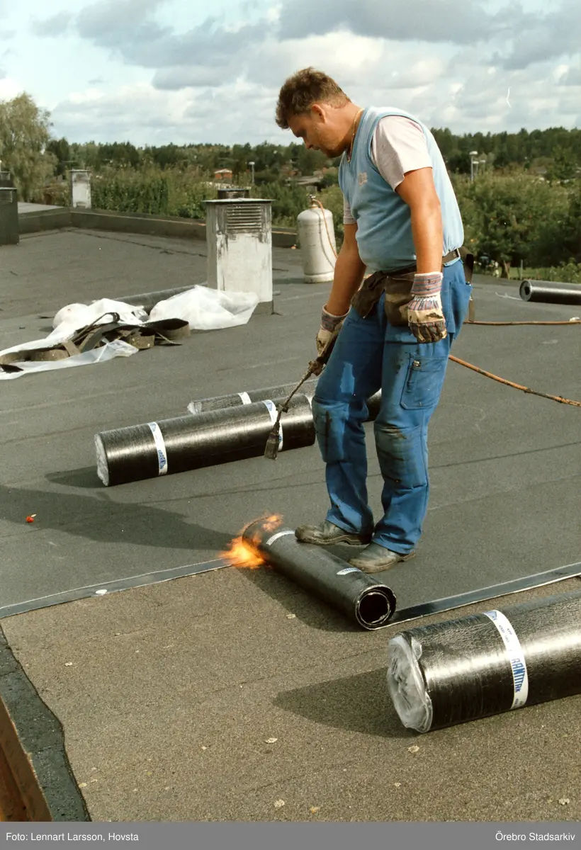 Pappläggning på tak på Bofinkstigen 6 i Örebro, 1992