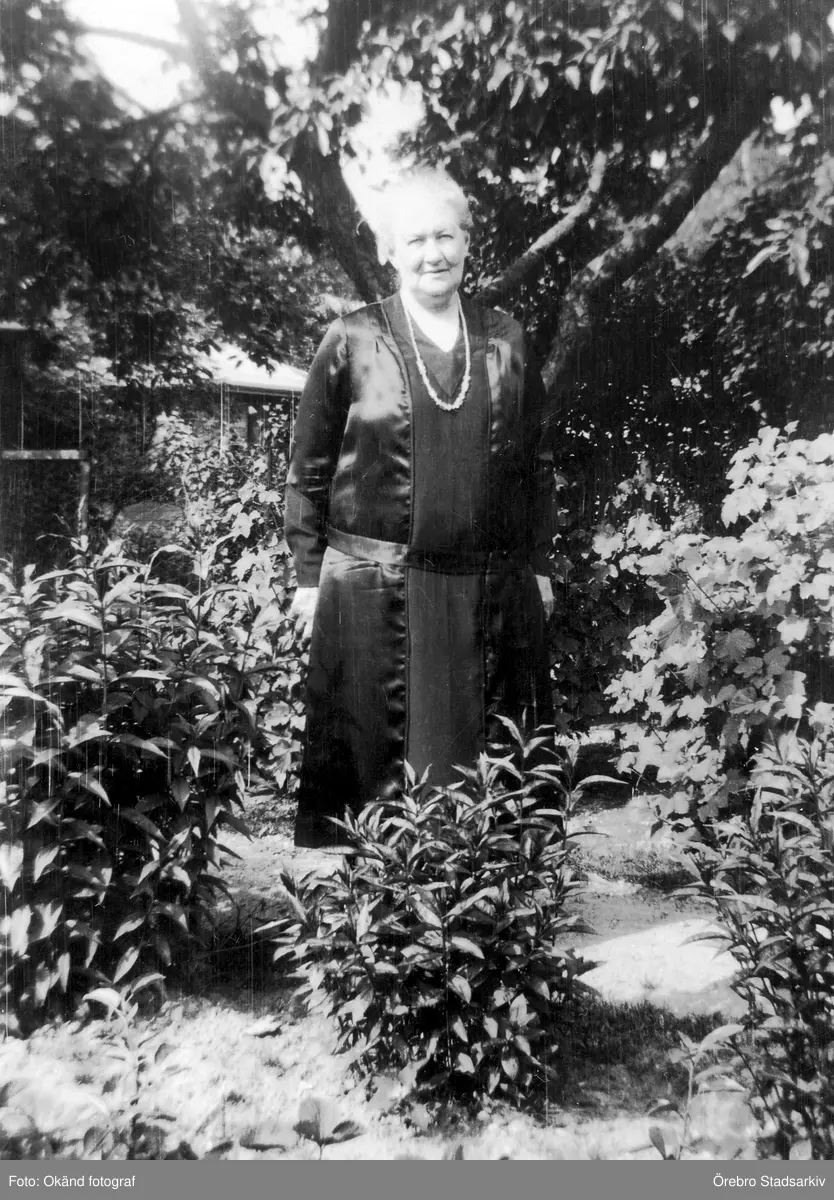 Kvinna i trädgård i Brockton i USA, 1928