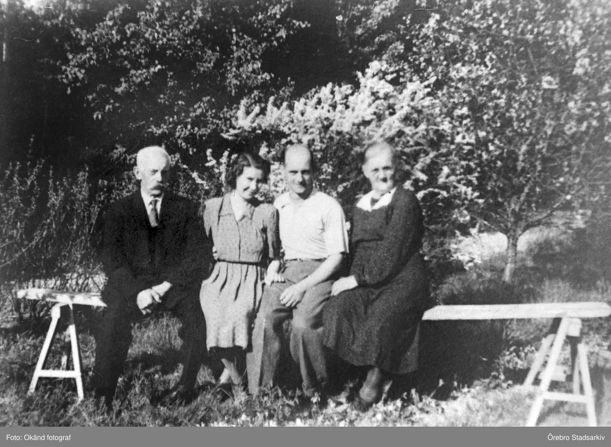 Grupp på bänk i Nysäter i Hovsta, ca 1947