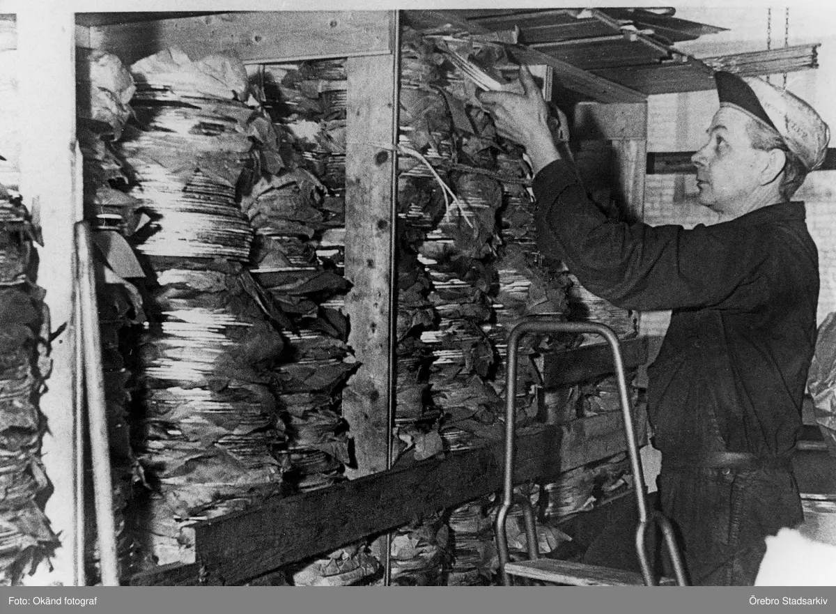 Man lastar aluminiumrondeller på Kokkärlsfabrikens plåtlager i Hagaby, 1930-tal