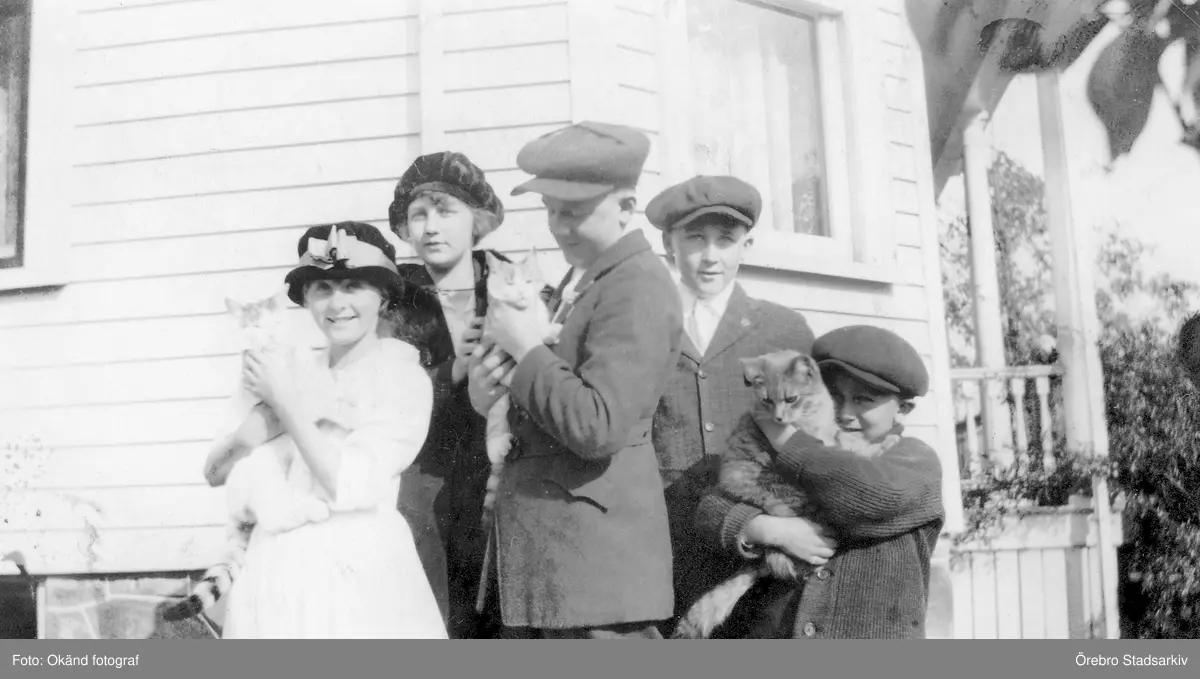 Barnen Sundström med katter i Brockton i USA, 1919
