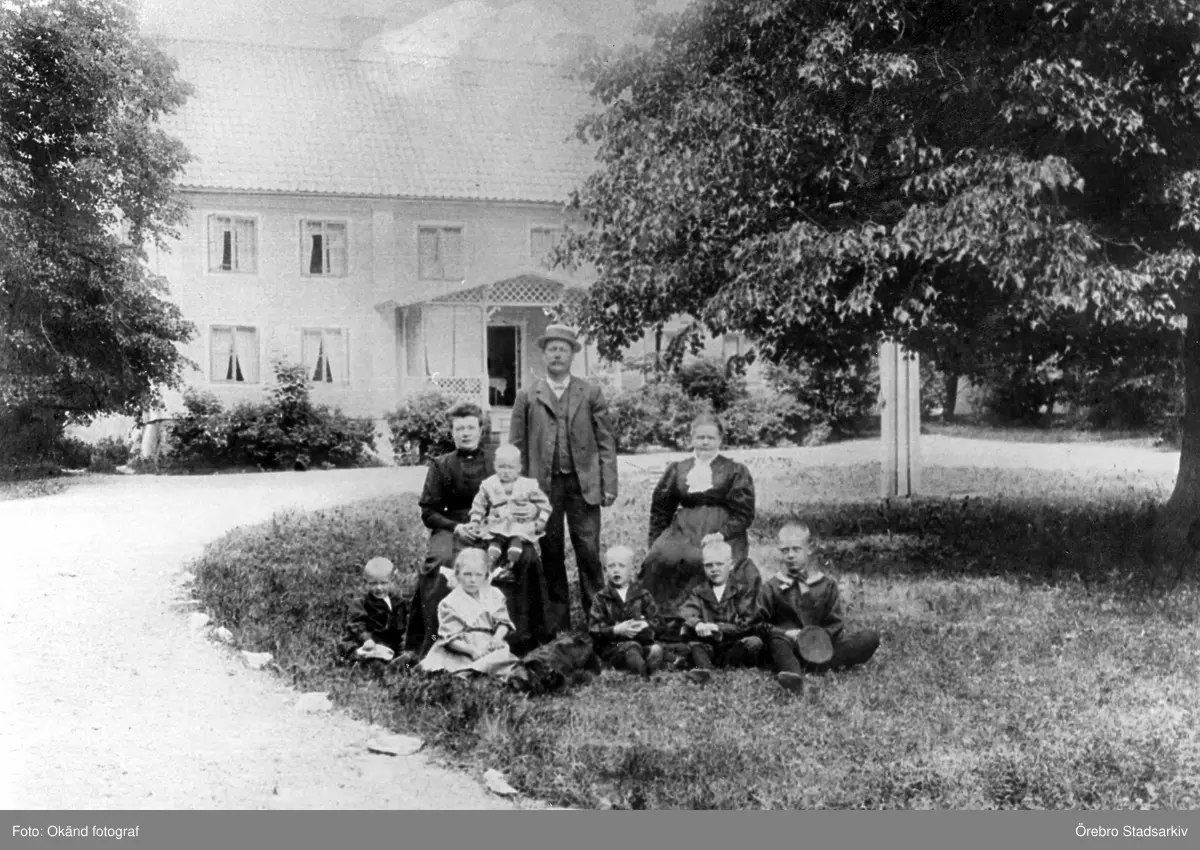 Familjen Eriksson framför Lunds gård i Hovsta, 1910