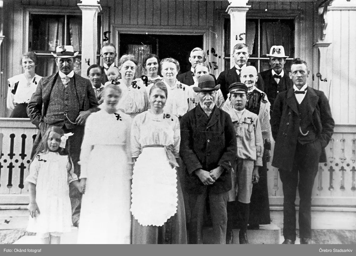 Grupp framför Kumla gård i Hovsta, 1917 ca