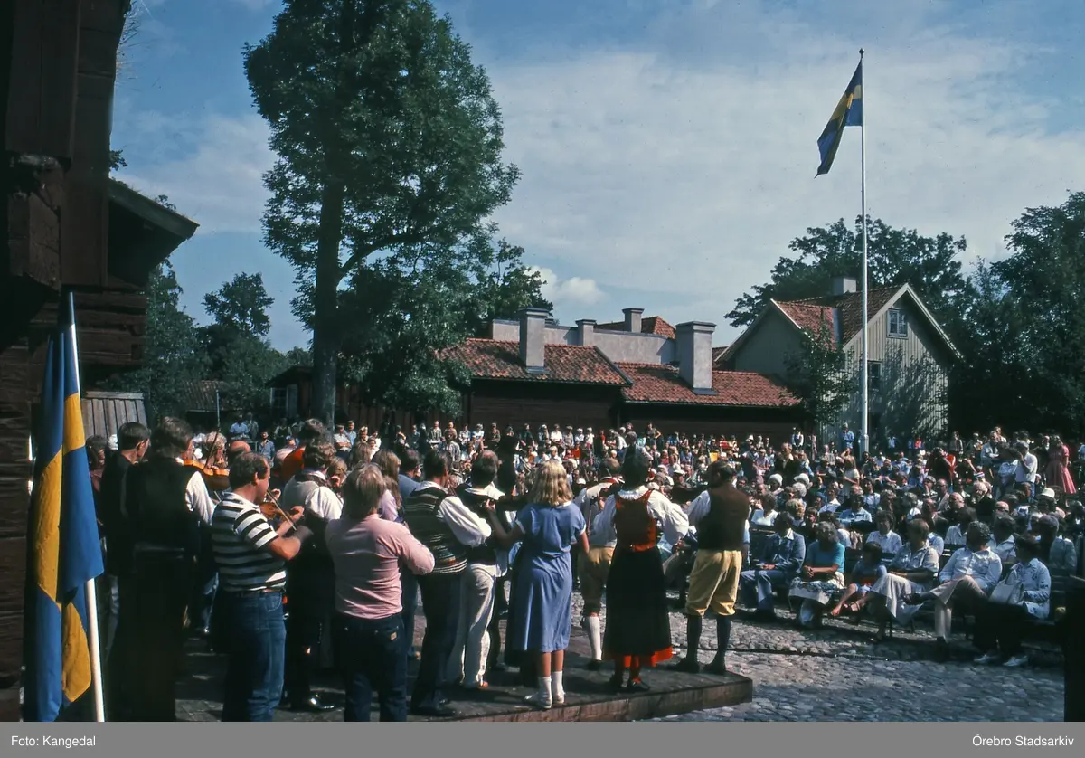 Musikuppvisning inför publik i Wadköping, 1980-tal