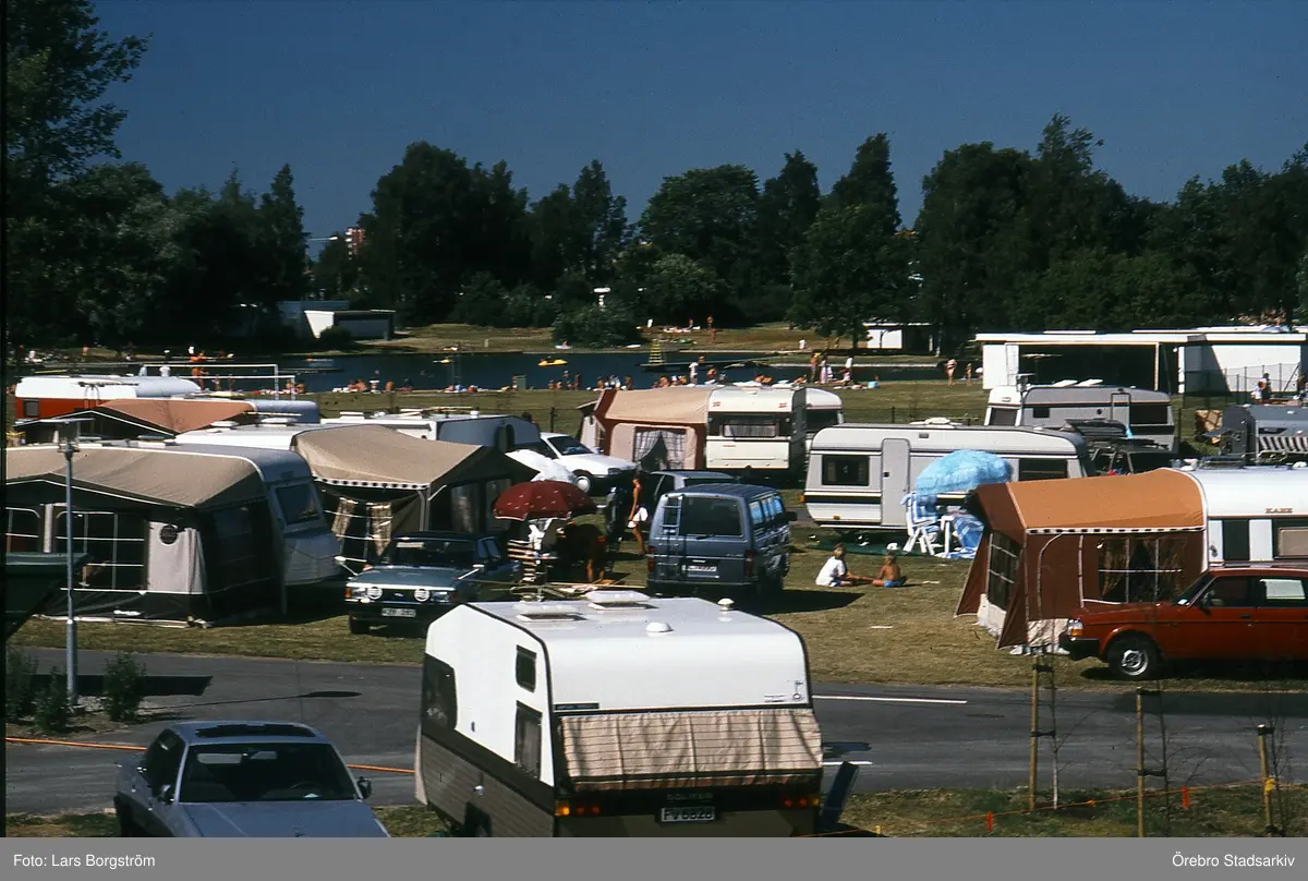 Husvagnar samsas på Gustavsviks camping, 1989