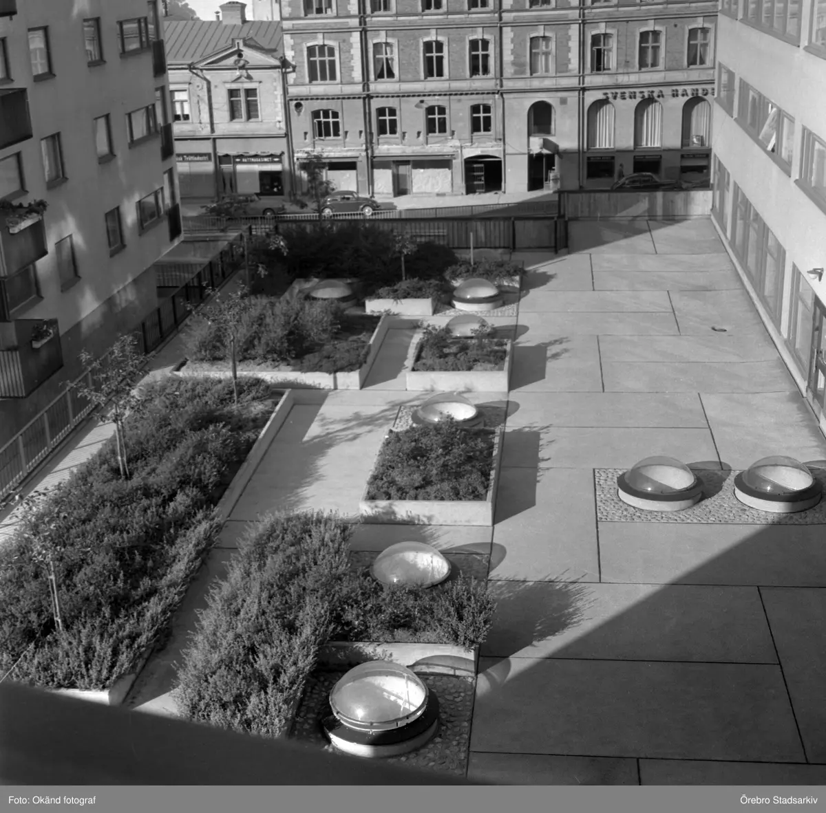 Gård med buskage och takkupoler på Rudbecksgatan 18, 1970-tal