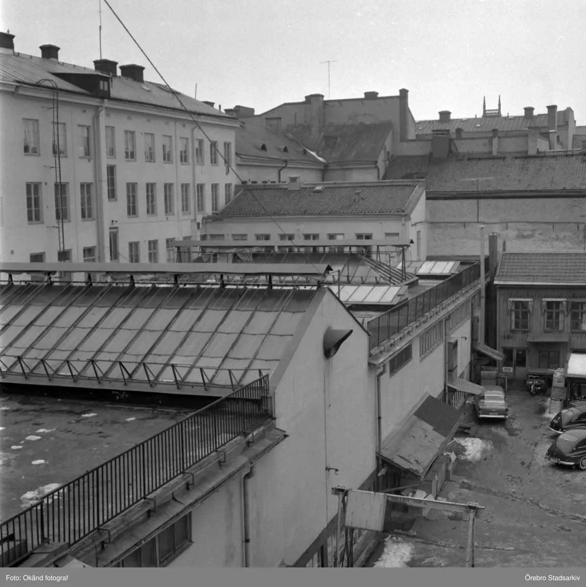 x Bilar och hustak på gården Drottninggatan 15, 1960-tal