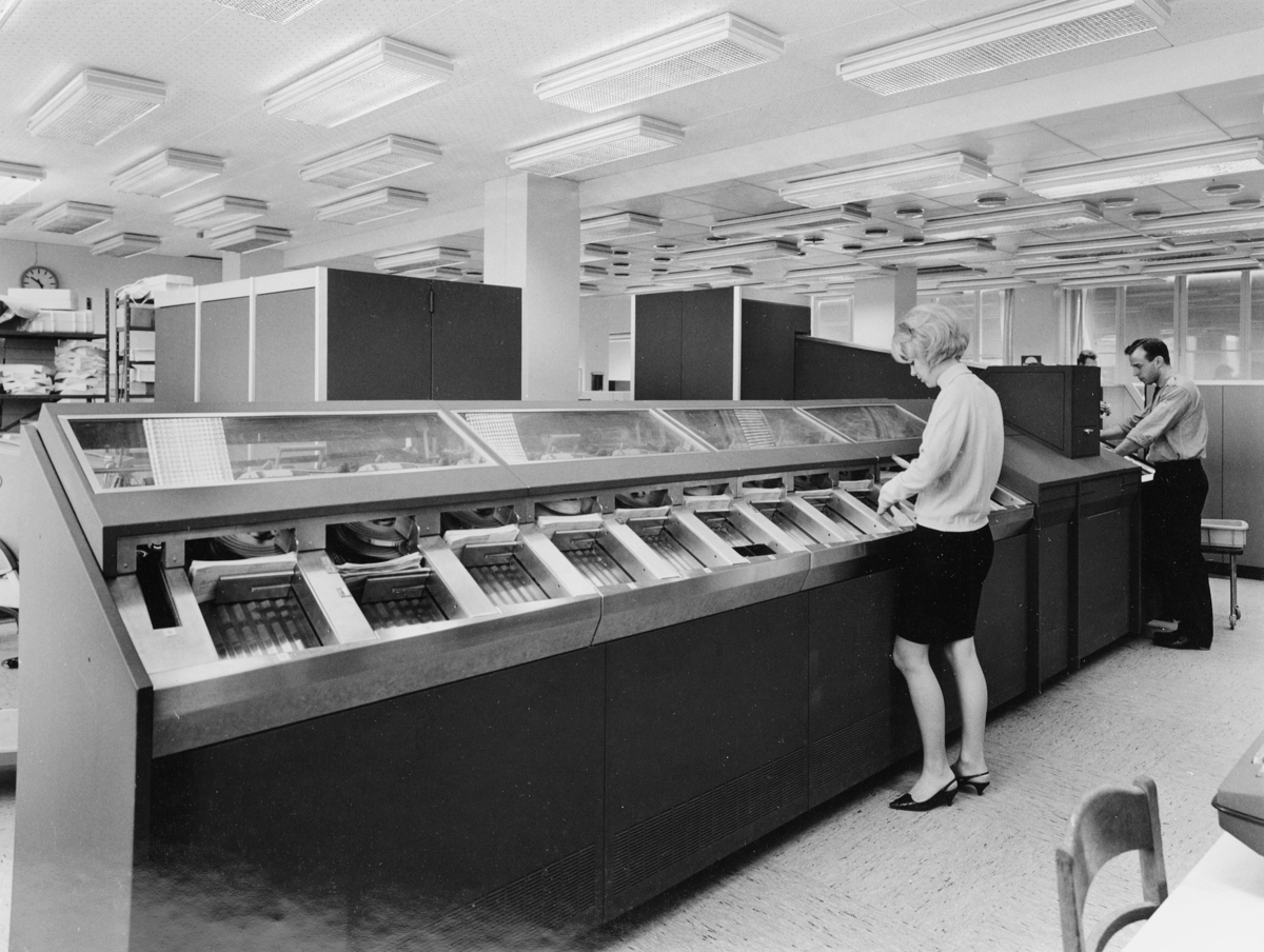 Optiska läsaren sedd från framsidan, fr.v. med 12 sorterings-fack.
