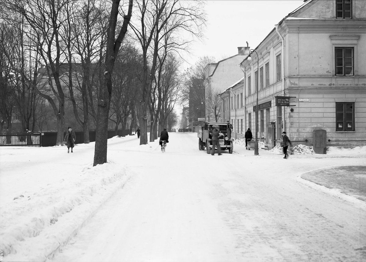 Alfred Brunnbergs Speceri-, mjölk- och matvaruaffär, Skolgatan 21, vid korsningen med Rundelsgränd, Uppsala 1940