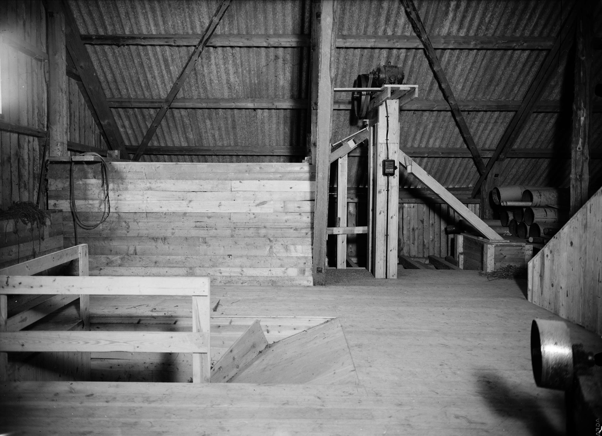 "Rationell planering av jordbrukets ekonomibyggnader ett tidens krav" - interiör i den nya ekonomibyggnaden, Högby gård, Uppland 1937