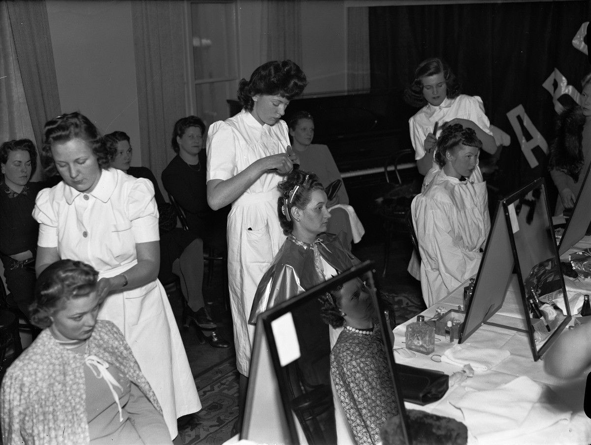 "Unga hårfrisörskor skötte sig utmärkt vid lyckad tävling", Uppsala 1942