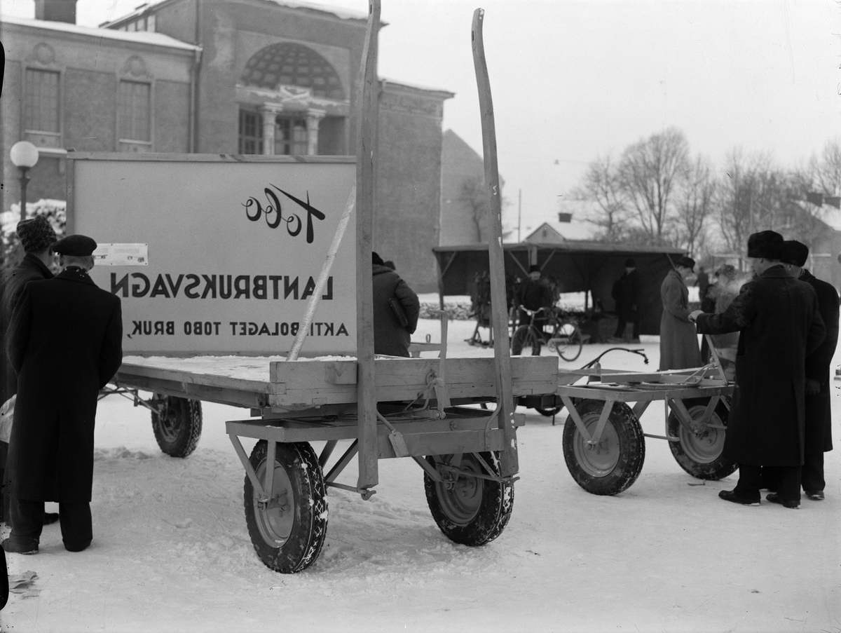 Gummihjulsvagnar - "Tobo lantbruksvagn" visas på Distingsmarknaden på Vaksala torg, Uppsala 1940