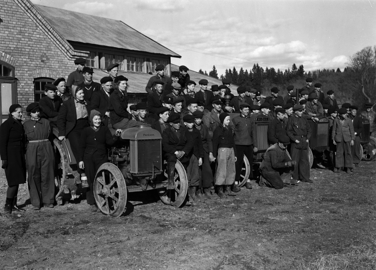 "Traktorer och skötare trimmas för vårbruket", Salsta, Lena, Uppland 1940