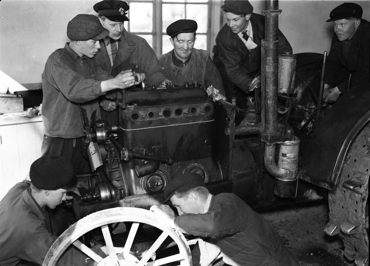 Titel: "Traktorer och skötare trimmas för vårbruket", Salsta, Lena, Uppland 1940