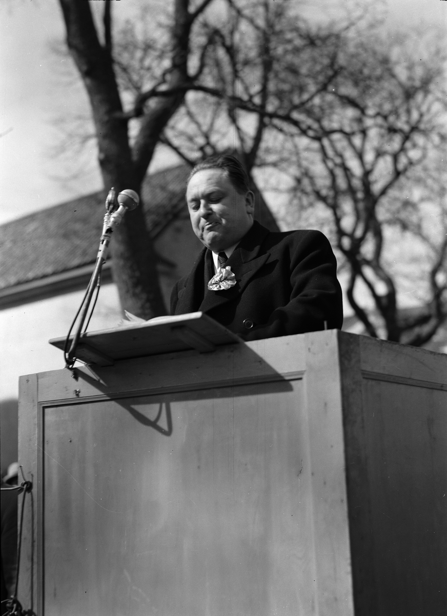 Titel: "10.000 i Odinslund vid medborgarmötet. Mäktig uppslutning kring de enande nationella livsvärdena" , Uppsala 1940