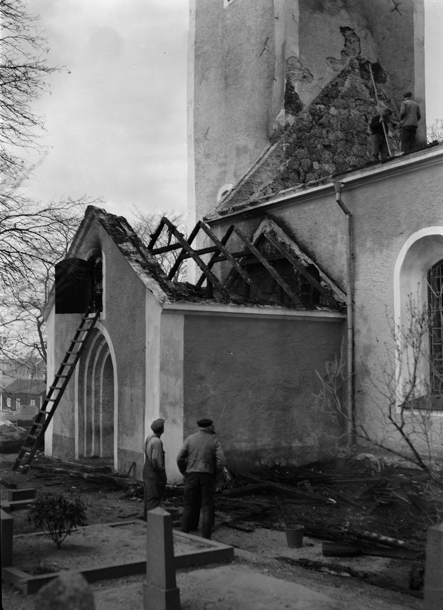 "Odensala kyrka härjad av brand", Uppland maj 1940