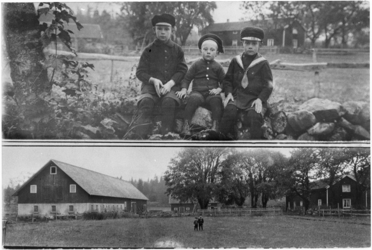 Text till fotografi: "Holger, Sven o Nils Neüman. Slättäng Vårkumla"