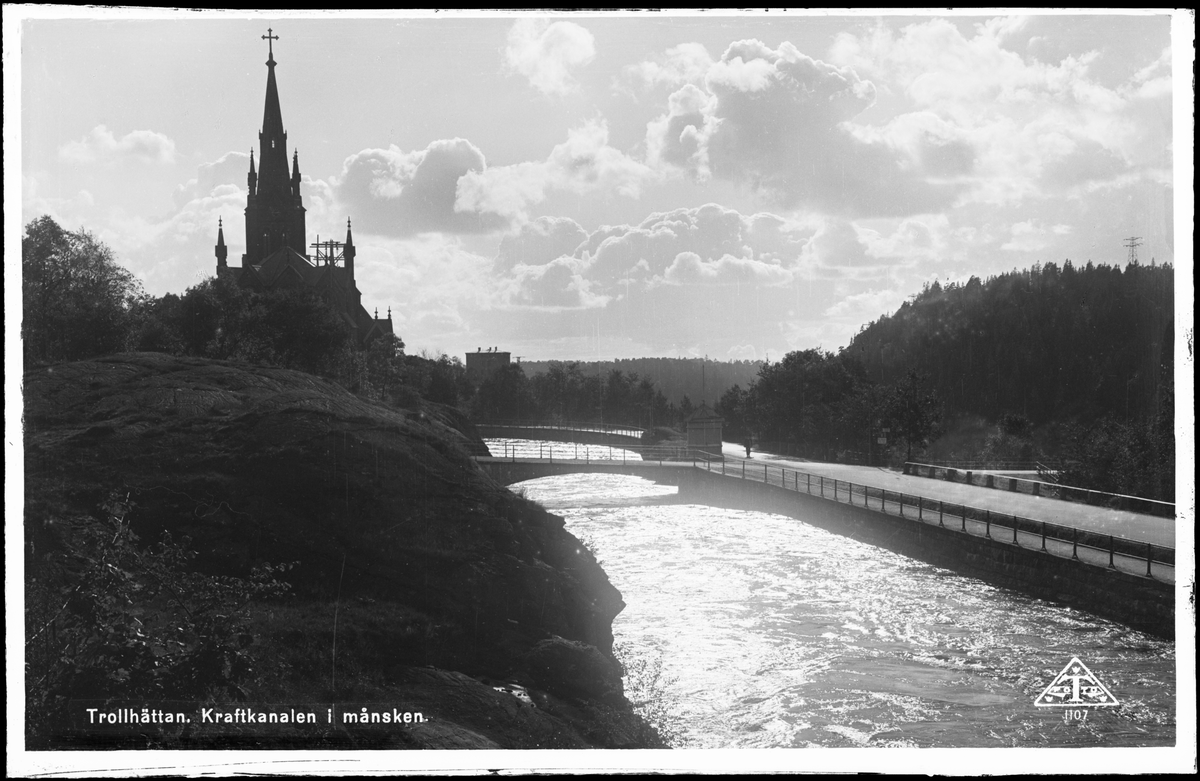 Trollhättan. Kraftkanalen i månsken