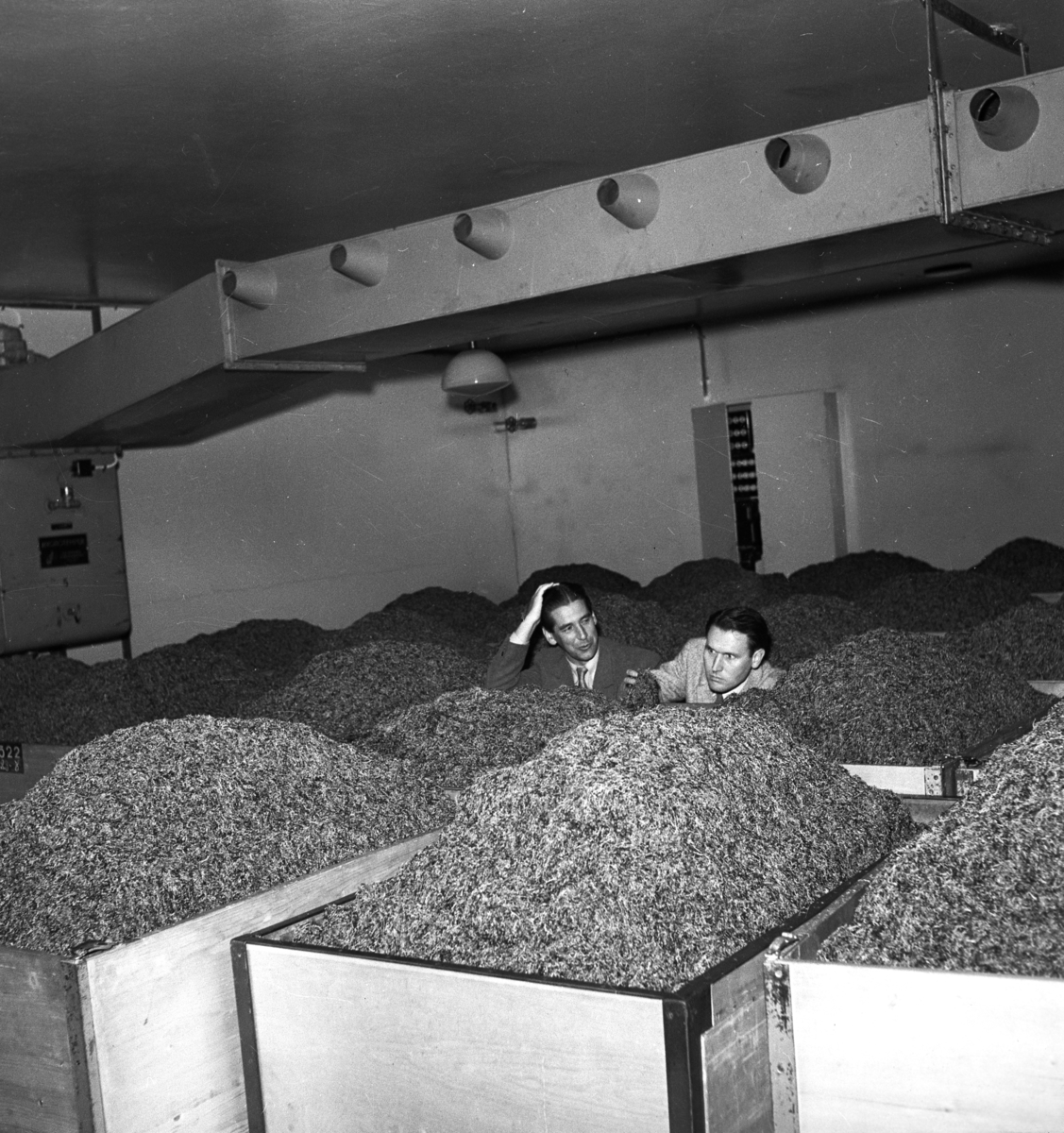 Titel: Bild från Svenska Tobaksmonopolets fabrik i Arvika tagen år 1946.