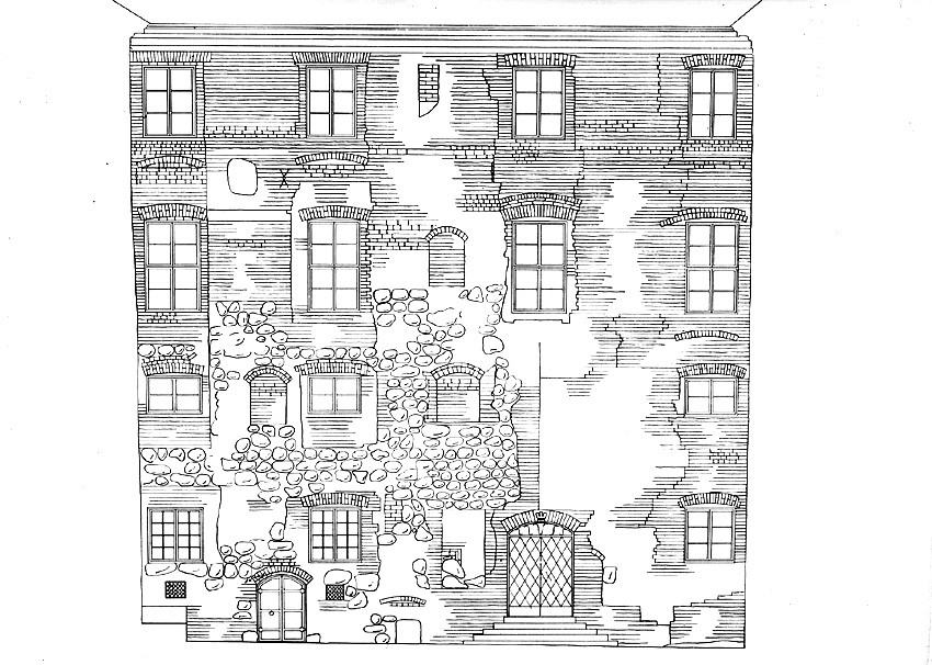 Västerås slott. Fasadritning, norra längans borggårdsfasad, uppmätning John Söderberg 1937.