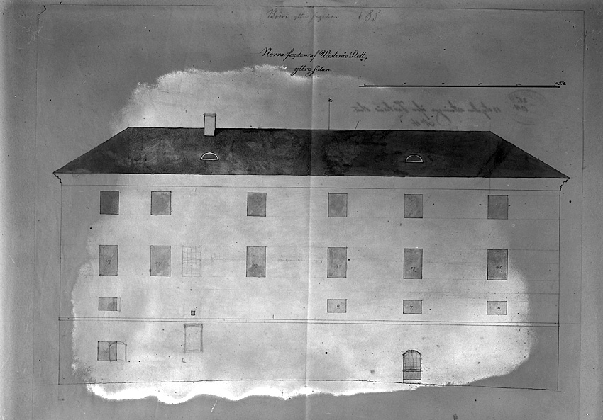 Västerås slott. Ritning, norra längans ytterfasad före 1920,
