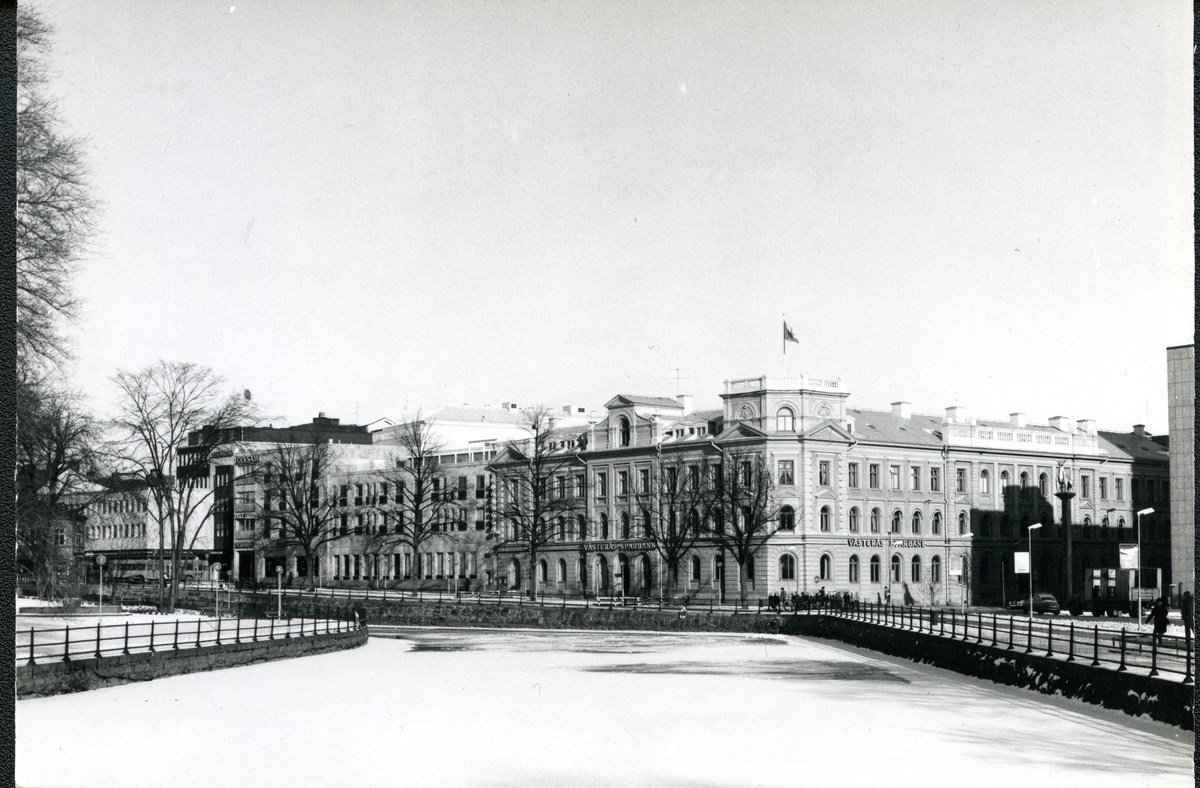 Parti av Svartån med Västerås Sparbank i Stora Westmannia i bakgrunden.