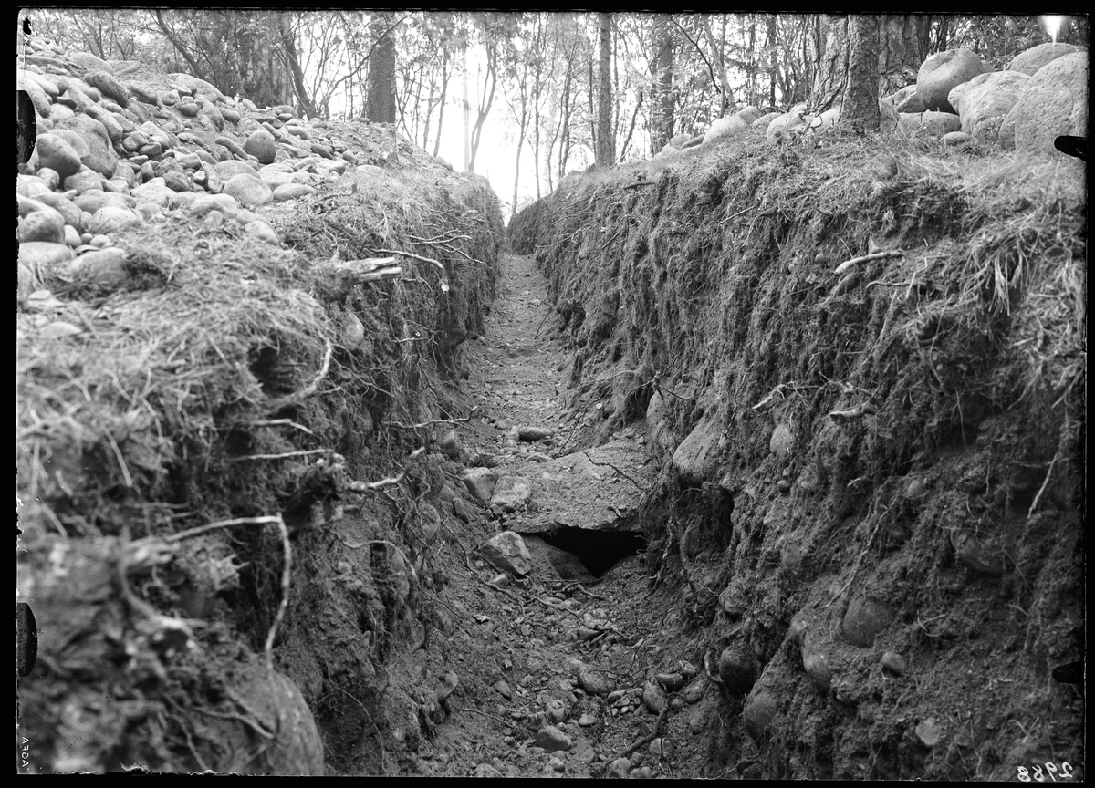 Skelettgrav, påträffad vid ledningsarbete, Prästgården, Badelunda.