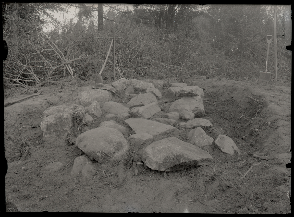 Fornlämningar nr 5, delblottade röset från öster, Kungsåra, Darsta.