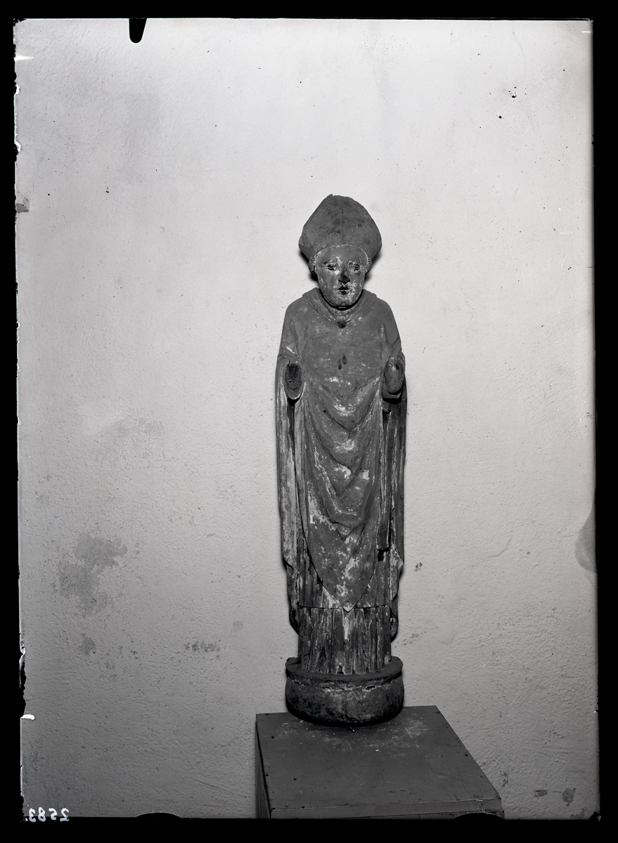 Titel: Skulptur av trä (Erasmus), kyrkan, Kila, Västmanland.