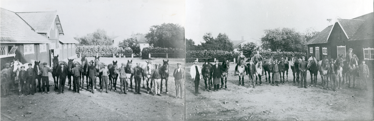 Panorama föreställande arbetslag på Råby gård. 1911.