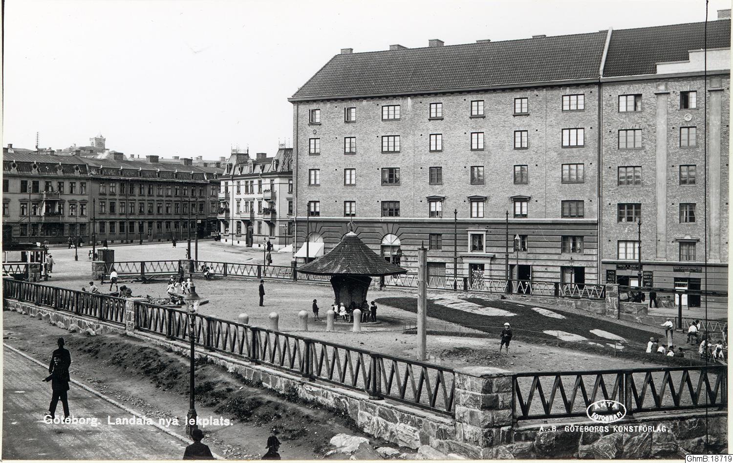 Landala nya lekplats vi Kapellplatsen, blick söder ut.