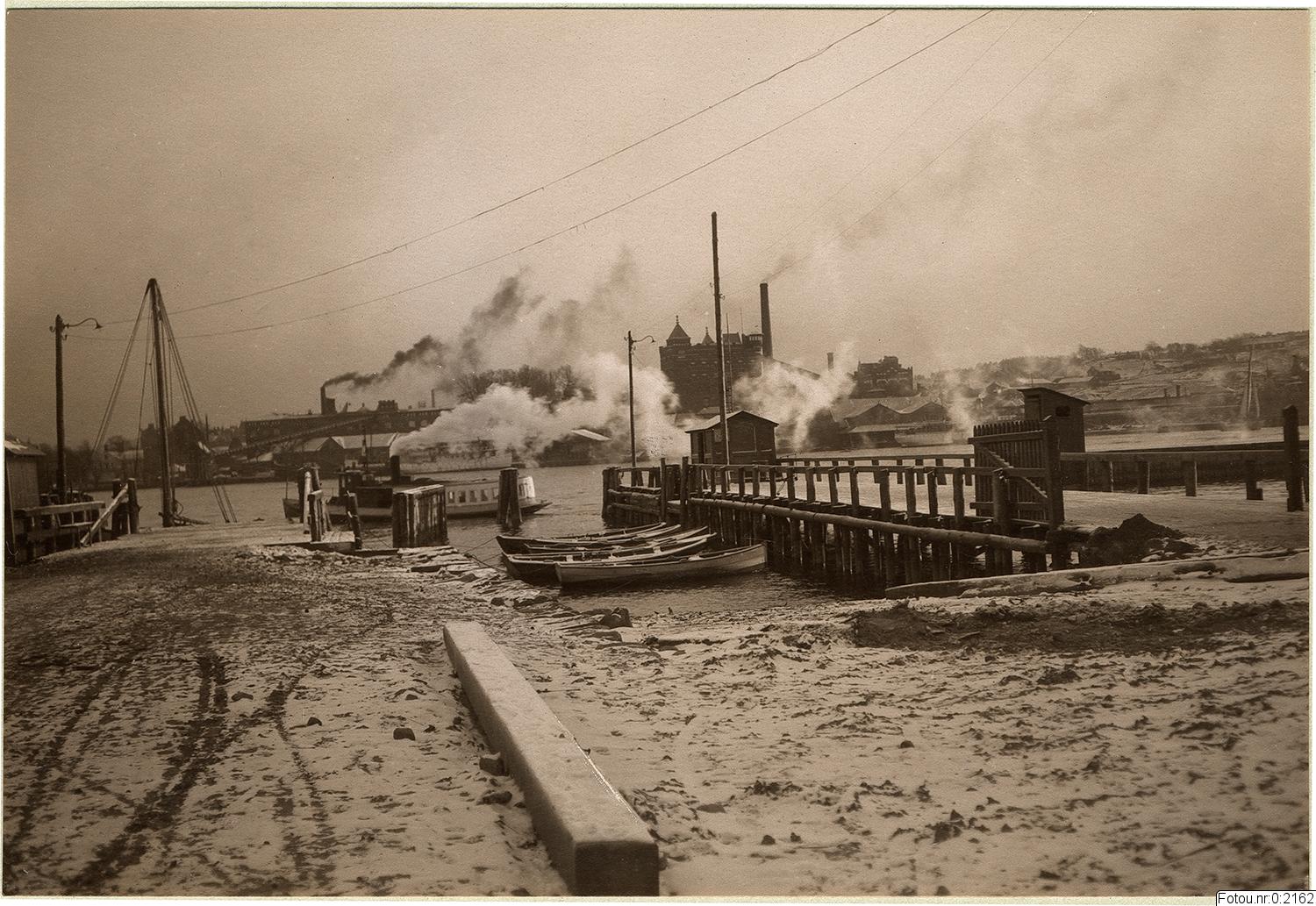 Färjenäs färjeläge med blick mot hamnen och Klippan med Carnegies Porterbruk.