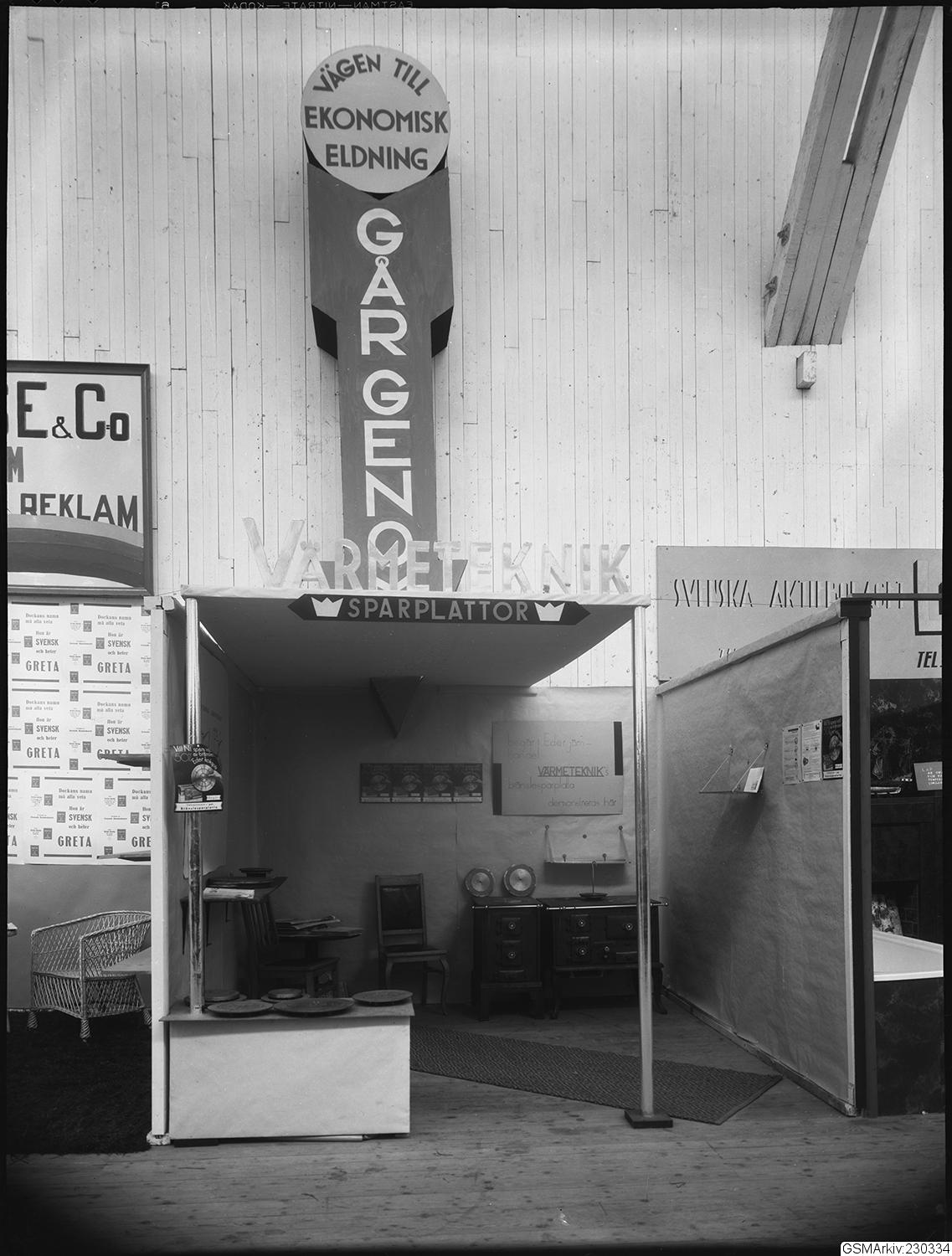 Monter på Svenska Mässan, utställare Värmeteknik som visar spar/värmeplattor.