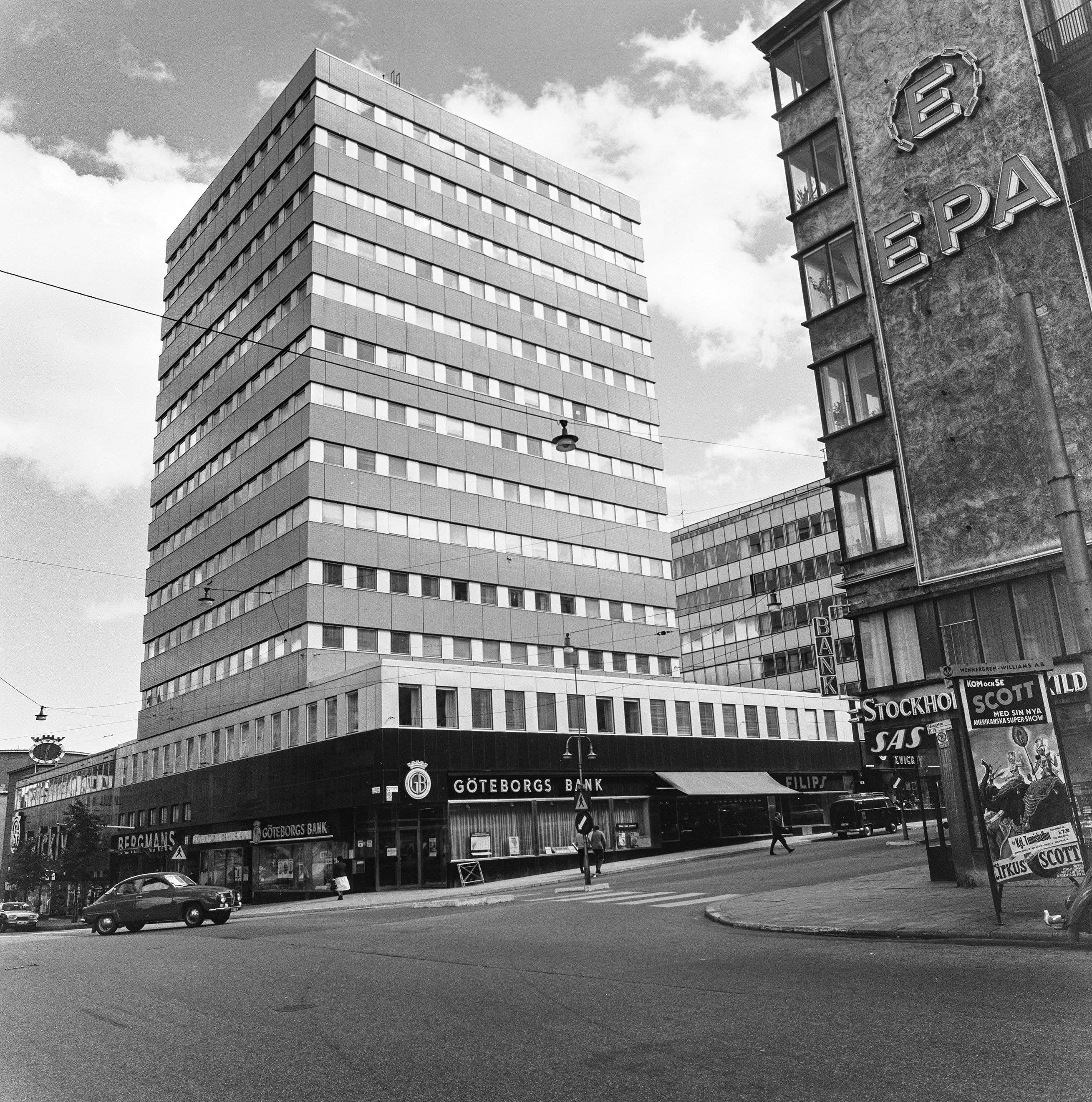 Beskrivning: Trafik utanför Läkarhuset och EPA-huset vid Odenplan