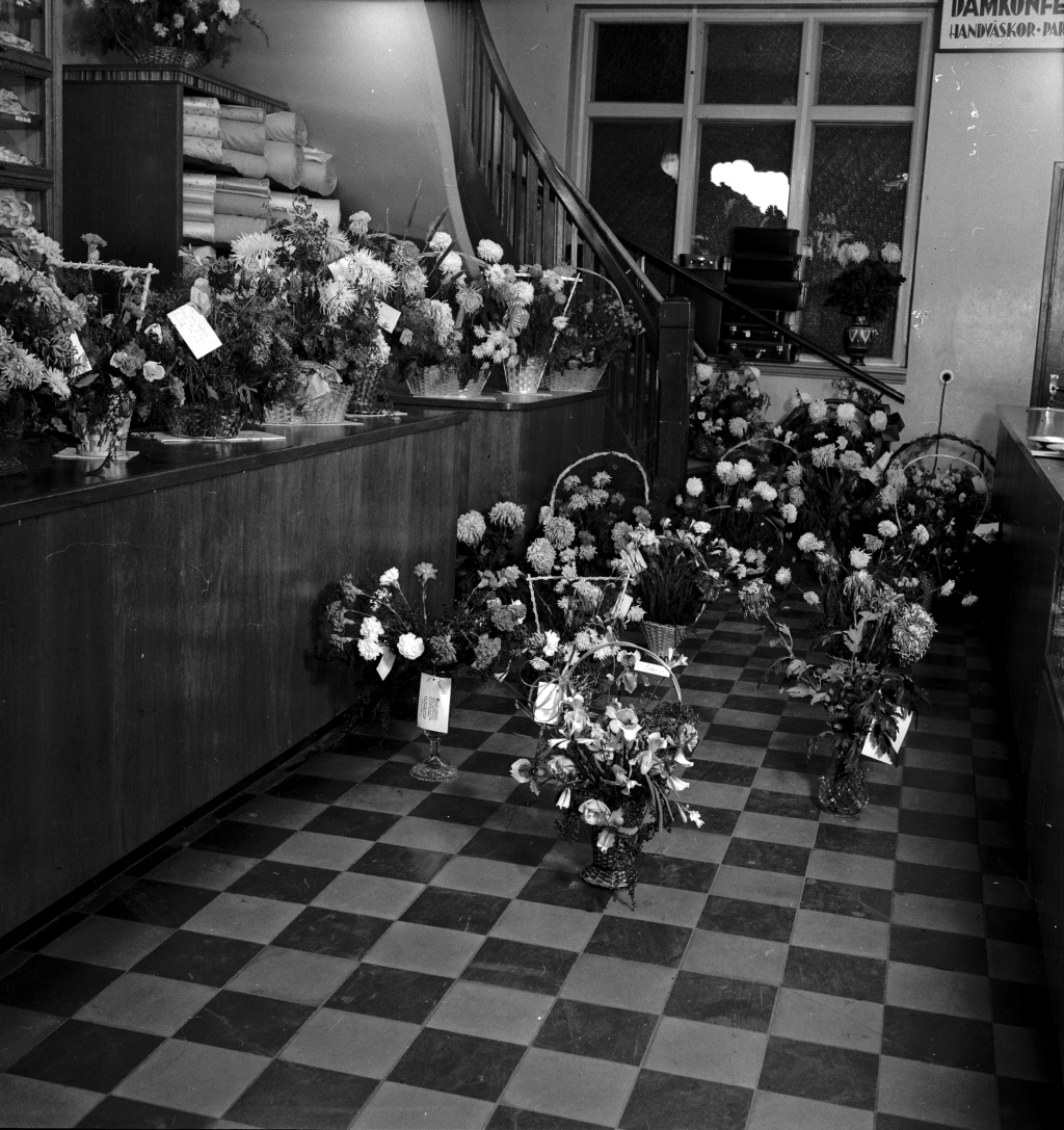 Titel: Bepes 50 år. Butiken fylld av blombuketter.