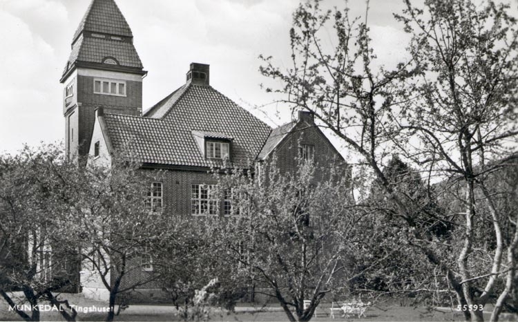Tryckt text på kortet: "MUNKEDAL. Tingshuset".