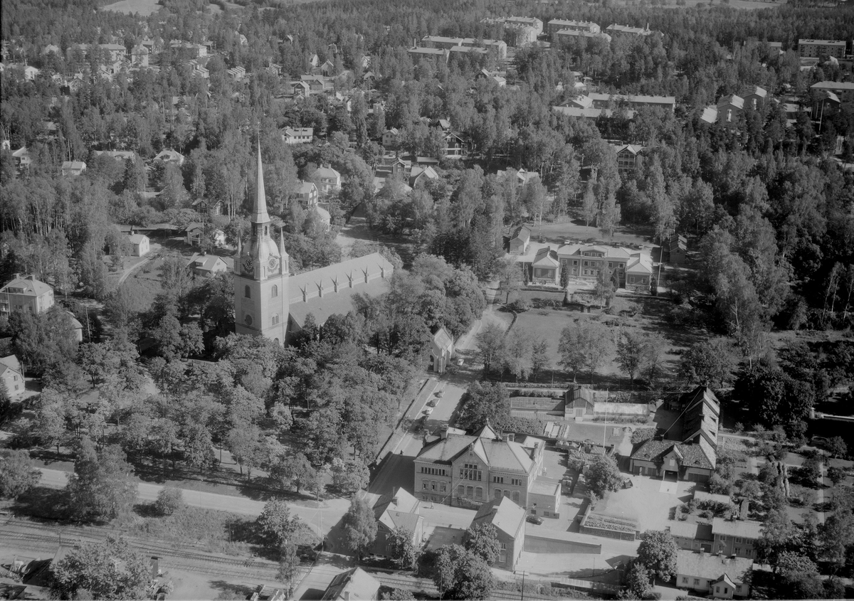Flygfoto över Stora Kopparbergs kyrka i Falun år 1964.