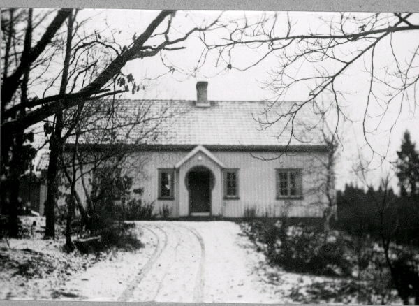 Tre fotografier av folkskolan i Bråtås, Rolfstorp tagna vintertid. Byggnadens två ingångar har "skunkar", dvs grunda farstukvistar med bänkar längs gavlarna, med nyckelhålsformade öppningar. På två av bilderna står ett gäng pojkar i skunken på gaveln. Tillhör samlingen med fotokopior från Hallands Nyheter som är från 1930-1940-talen.