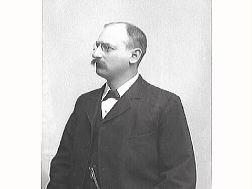 Mansporträtt i profil. Doktor Constantin Pettersson, överläkare vid Varbergs lasarett (sjukhus).