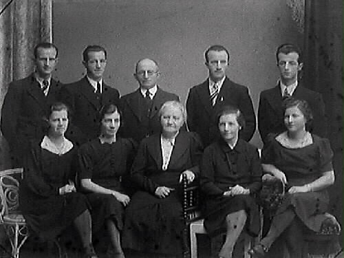 Familjen August Svensson där han står med sönerna och makan sitter med döttrarna. (Se även bildnr MR2_2393, MR2_2170)