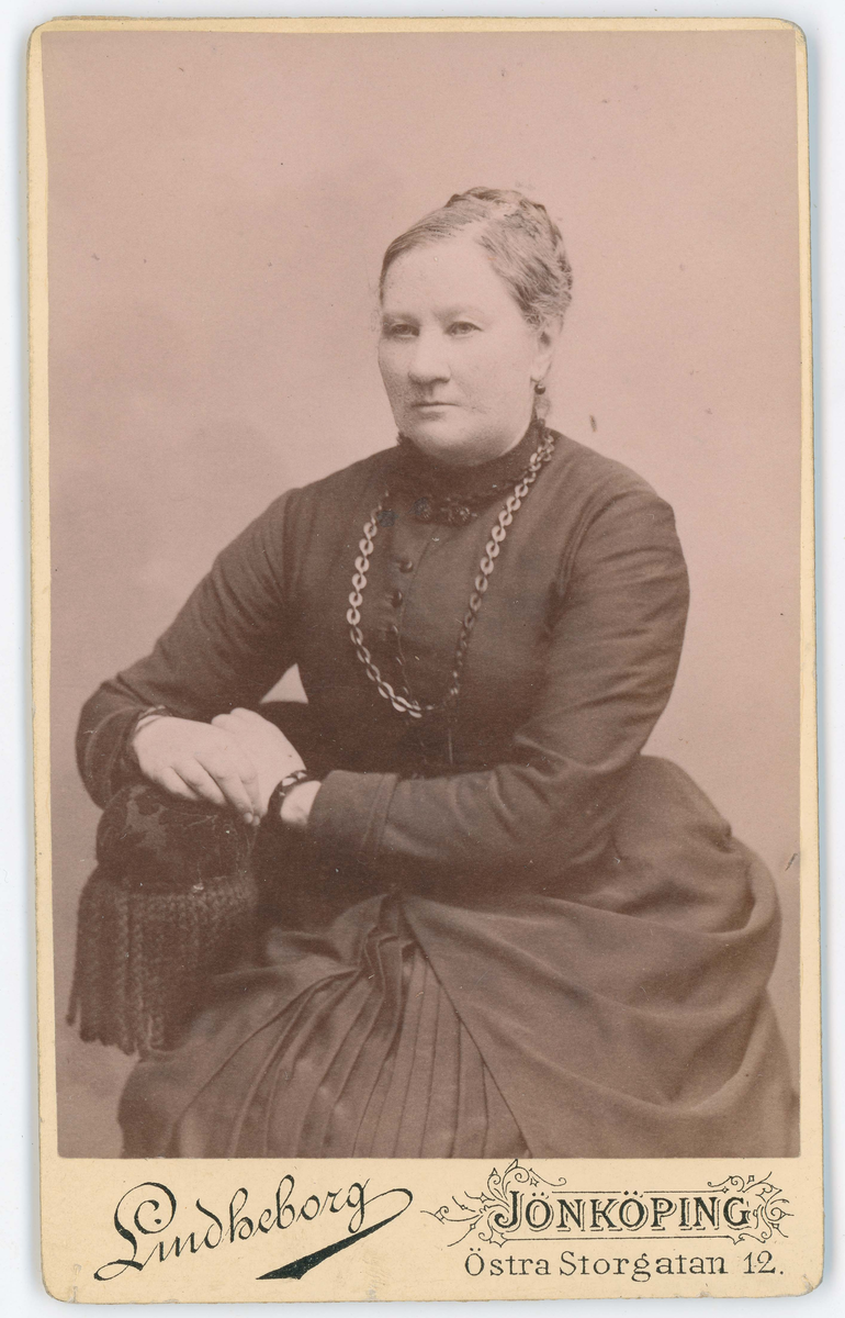 Porträtt på Fröken Sofie Lindberg, Jönköping. Ägare av Lundgrenska Boktryckeriet.