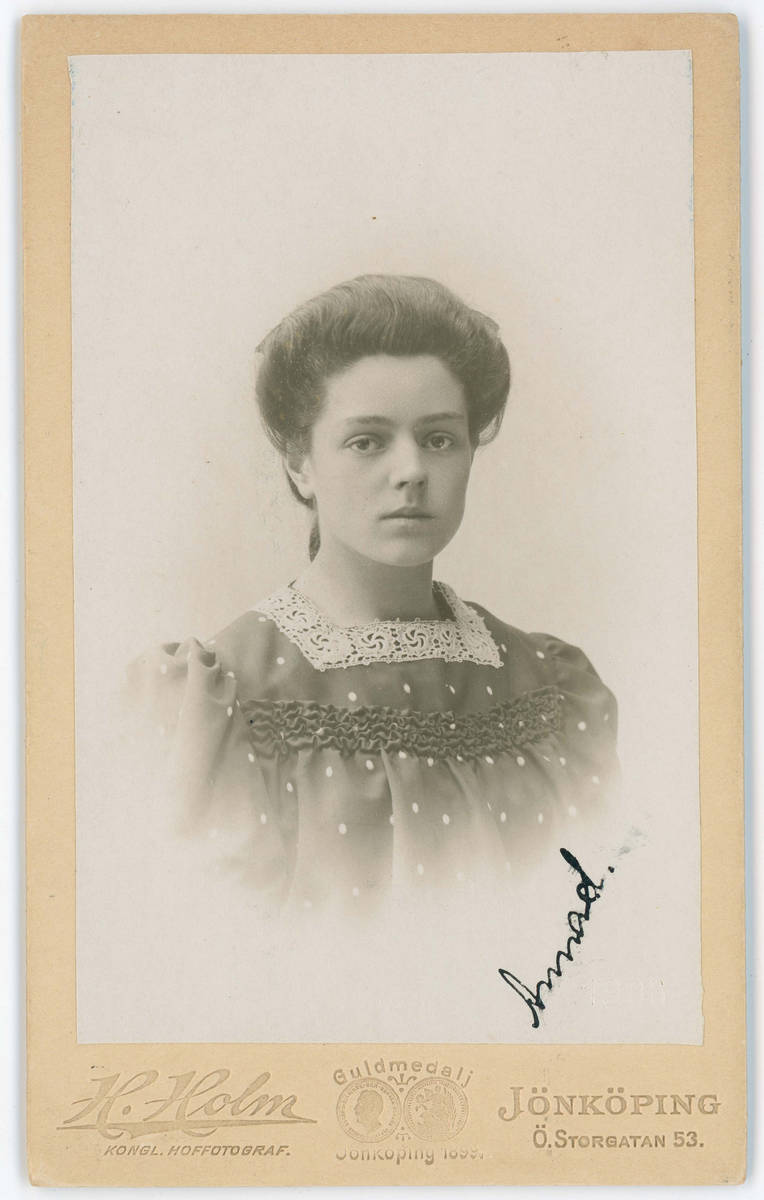 Porträtt på Anna Lindman - Wennberg. Senare gift med sin kusin Helge Wennberg.
