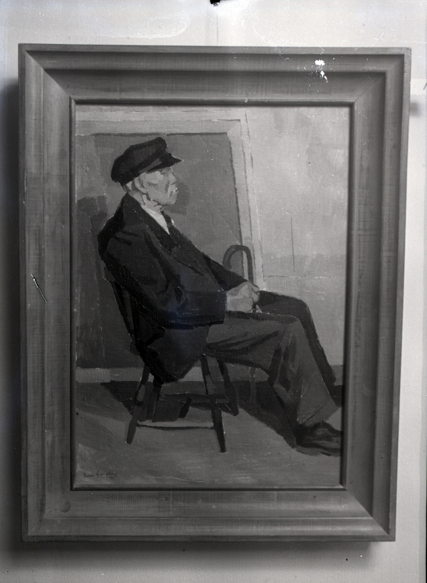 Målning av äldre man. Signaturen har tytts som Sven Ljungberg.