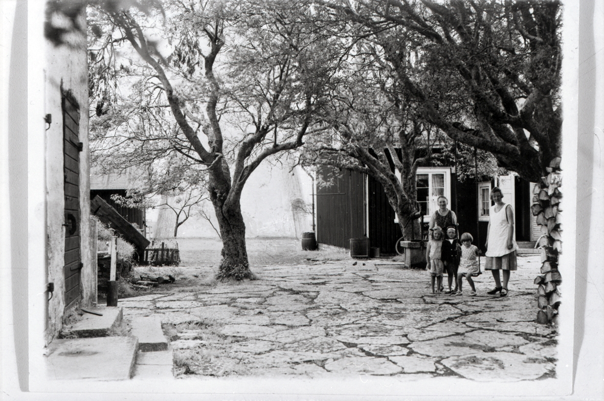 Gården mellan fyrvaktare och fyrbiträdes hus i Gräsgård med rönnar.